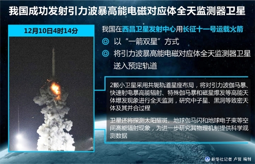 图表:我国成功发射引力波暴高能电磁对应体全天监测器卫星