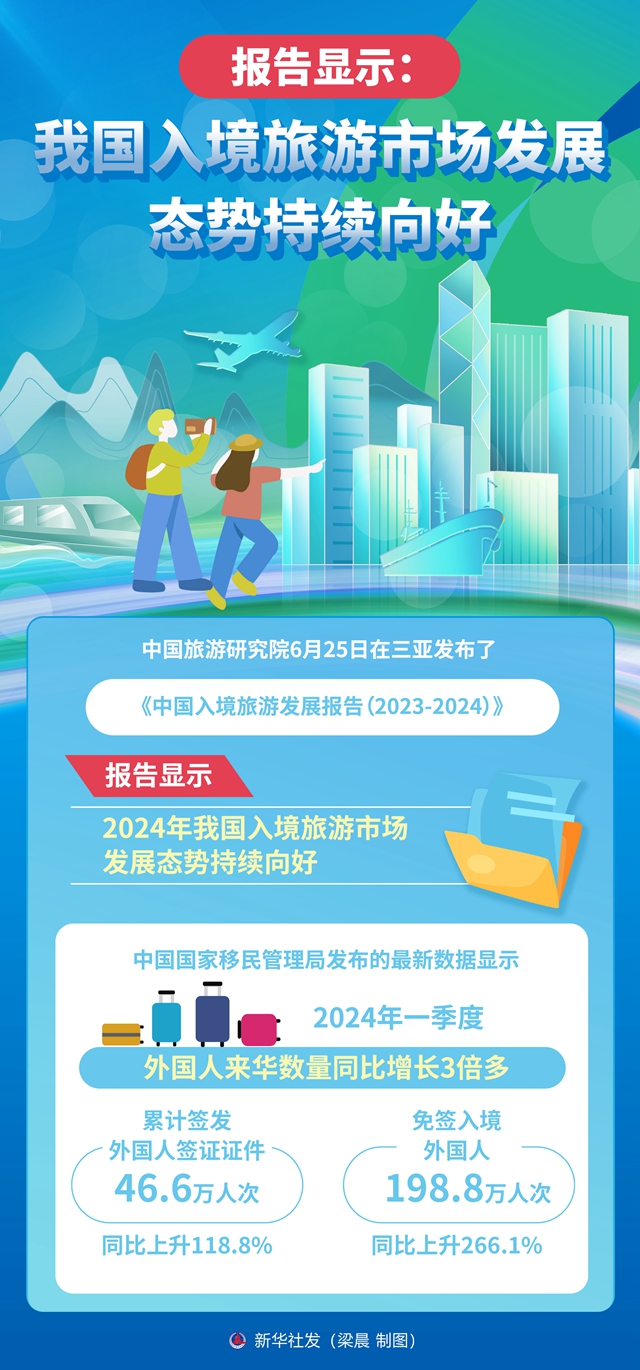 中国旅游研究院6月25日在三亚发布了《中国入境旅游发展报告(2023-2024)》。报告显示,2024年我国入境旅游市场发展态势持续向好。